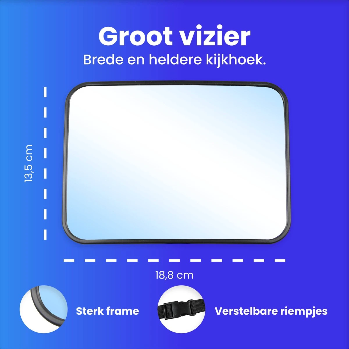 De spiegel is gemaakt van splintervrij acrylic veiligheidsglas. Met een afmeting van 13,5cm x 18,8cm beschikt de spiegel over een groot vizier om je kleintje goed in de gaten te houden.