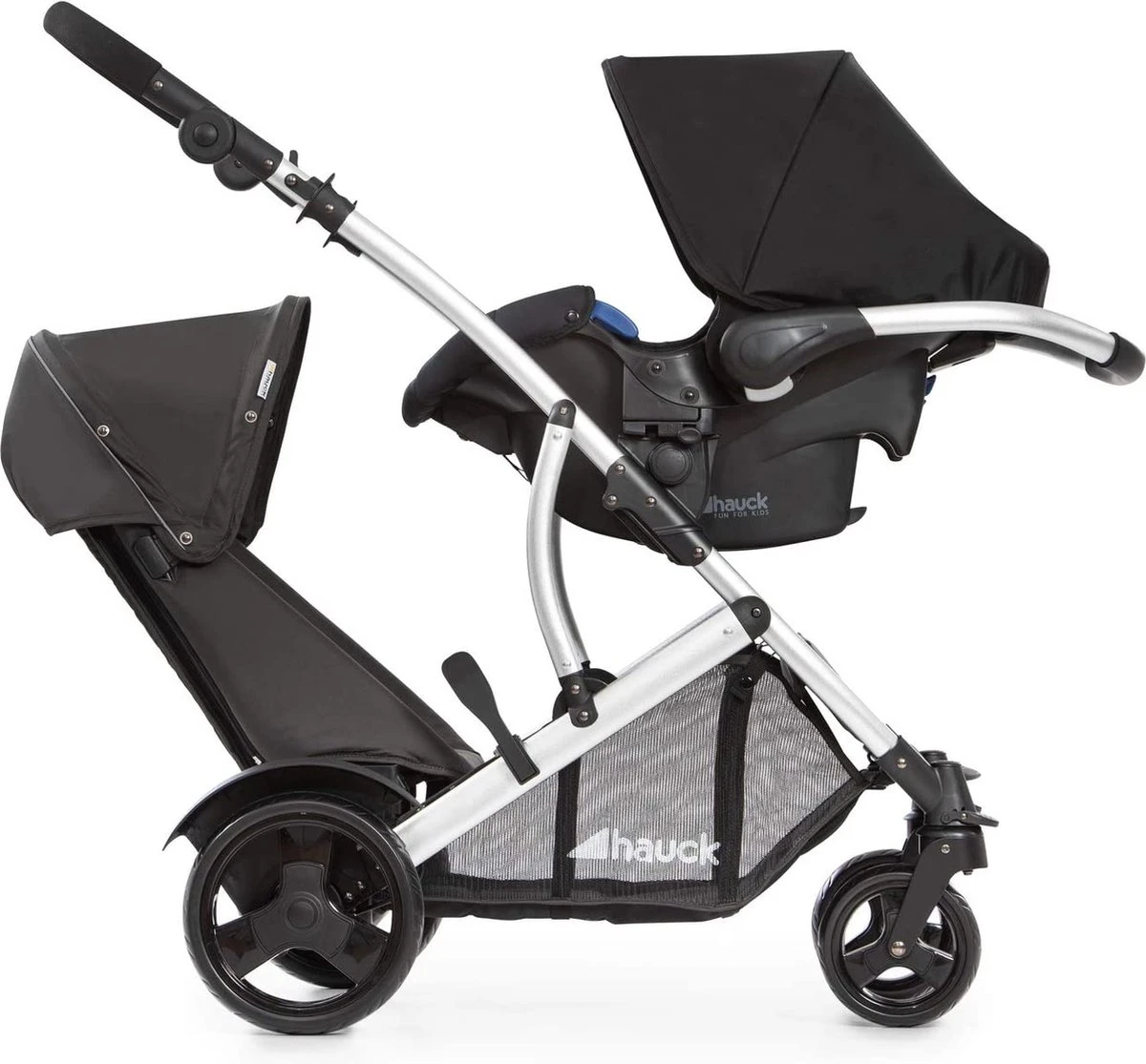 Deze slimme broer en zussen kinderwagen Duett 2 past zich gemakkelijk aan uw gezin aan. Het hoofdzitje kan zowel als kinderwagen voor een pasgeboren baby of als comfortabel zitje voor een peuter worden gebruikt door deze via de bevestigingen om te zetten.