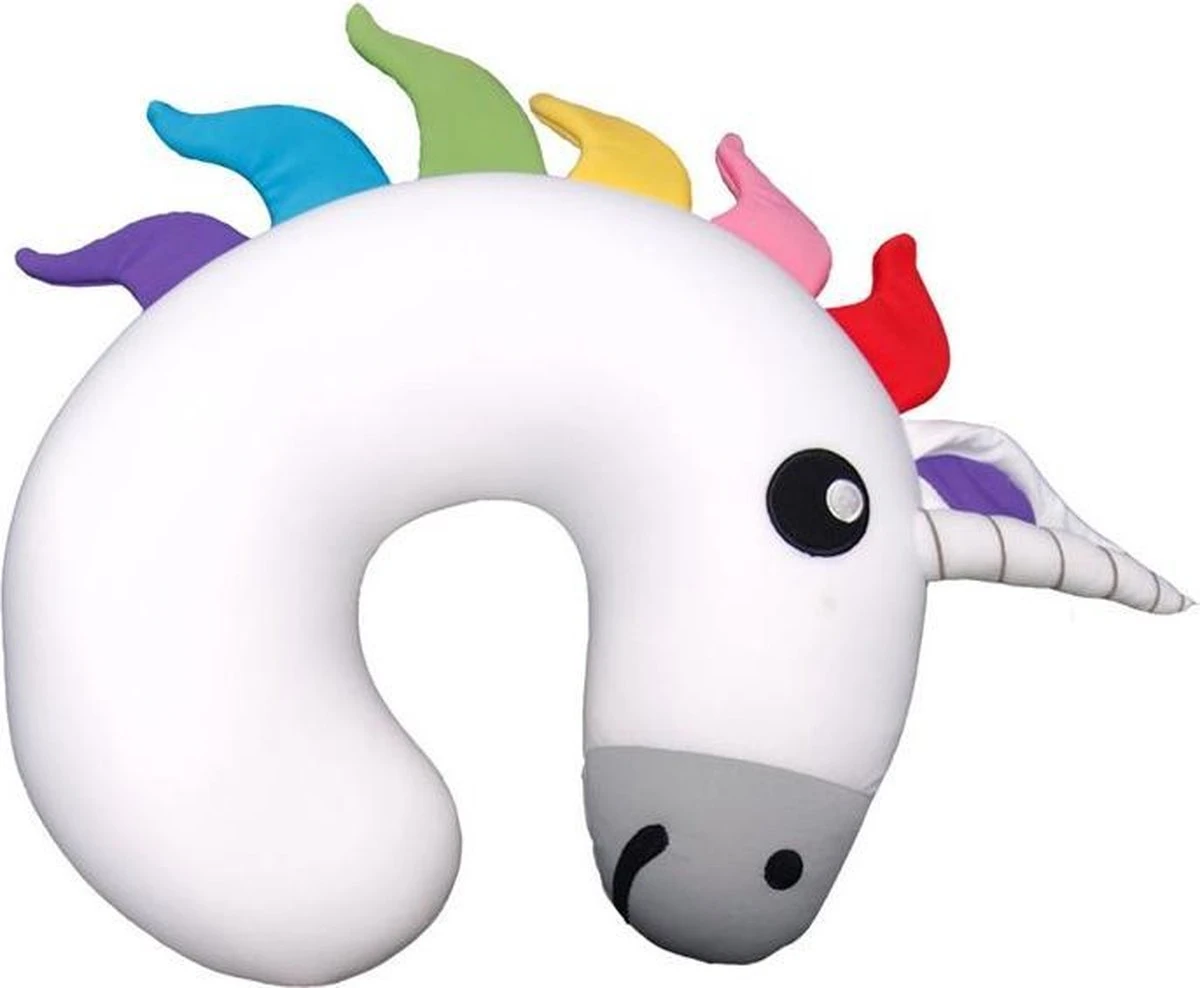 Eenhoorn nekkussen van Bitten. Reiskussen voor in het vliegtuig, de auto of in de bus. Nekkussen in de vorm van een unicorn. Het eenhoorn nekkussen is wit met gekleurde manen. Houd nek en hoofd op zijn plaats tijdens het slapen onderweg. Gemaakt van zacht materiaal. Het unicorn reiskussen heeft een clip om aan de bagage vast te maken. Afmeting: 35 x 35 x 10 centimeter.