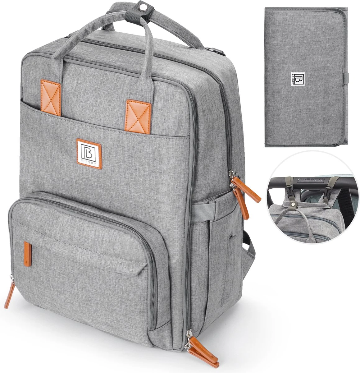 Brisby slijtvaste luiertas – Uniseks – Diverse luiervakken – Strak ontwerp – Waterafstotend – Lichtgrijs