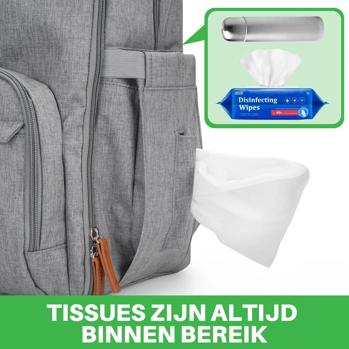 De tas koop je inclusief een gratis verschoonmatje voorzien van foam, ideaal als je onderweg bent en je kindje een schone luier nodig heeft. Zo is je baby tijdens het verschonen altijd verzekerd van een comfortabele ondergrond.