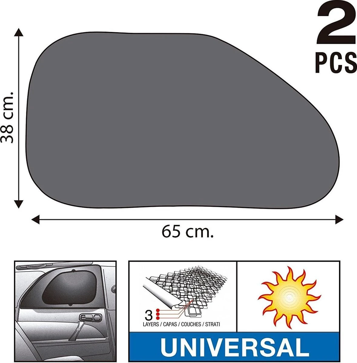 Bescherm je passagiers op de achterbank tegen de felle zon met deze zonneschermmen van Car Plus. Je plakt de schermen gemakkelijk tegen je zijruiten met de bijgeleverde zuignappen.