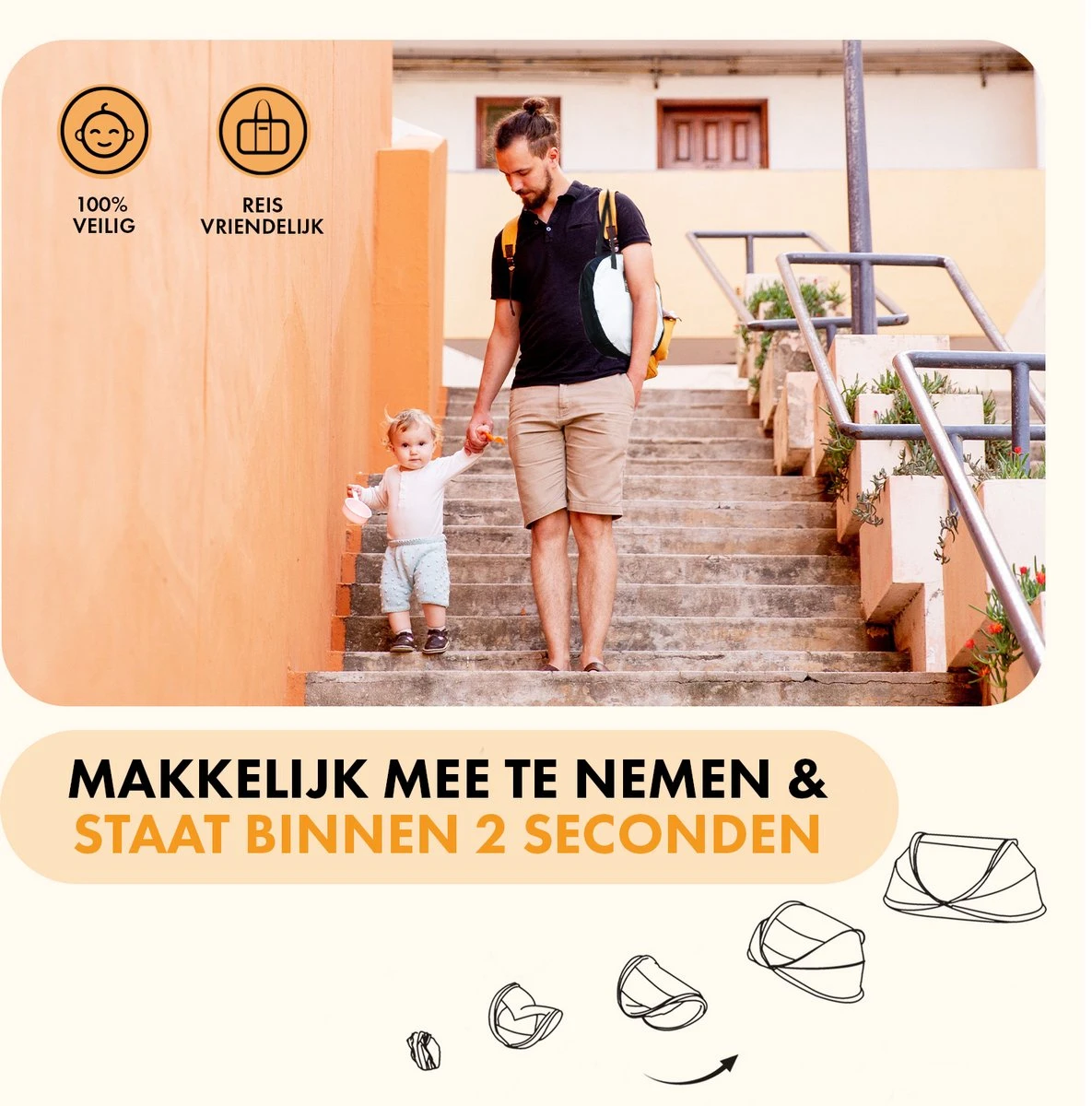 De Infant Baby is een superhandig pop-up reisbedje dat nog geen 1 kilo weegt en binnen 2 seconden is opgezet. Daarmee is deze een stuk gebruiksvriendelijker dan andere campingbedjes die vaak onhandig, groot en zwaar zijn. In de Infant Baby ligt je baby veilig en afgeschermd voor insecten. De bovenzijde is namelijk voorzien van een paneel van gaas dat je eenvoudig dicht kunt ritsen. Door de zeer kleine maaswijdte komt hier geen mug of ander insect meer doorheen.