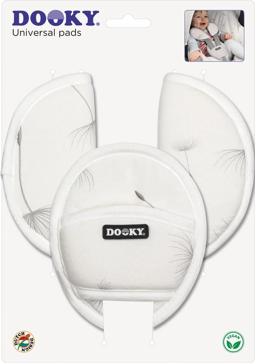 De Dooky gordelbeschermers zijn stijlvolle zachte kussentjes voor de gordels en het kruisstuk van de autostoel groep 0+, groep 1 maar ook voor de buggy. Perfect te combineren met de Dandelion autostoelhoes 0+ van Dooky. Zo zit je kindje heerlijk comfortabel in de autostoel. De gordelbeschermers zijn zeer gemakkelijk aan te brengen door het klittenband.