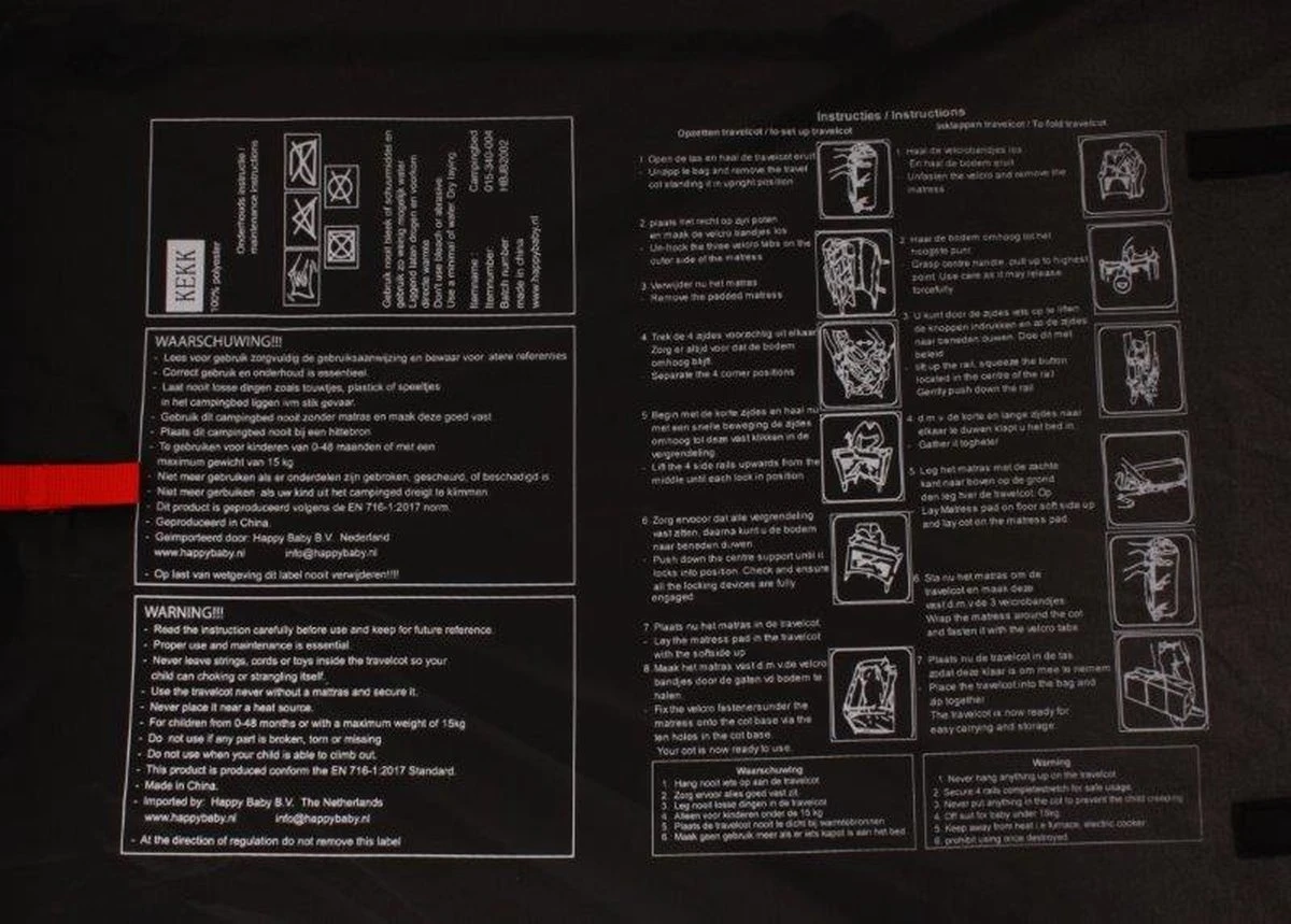 Bij een campingbedje is het belangrijk dat het in en uitvouwen weinig moeite kost. Bij het reisbedje uit de KEKK collectie is dat zeker het geval. Door in het midden de rode lus op de bodem omhoog te trekken en daarna de zijde’s in te drukken klapt het bedje gemakkelijk in en vouw je deze samen tot een handig pakketje welke je in de bijgeleverde draagtas kan plaatsen zodat je deze makkelijk mee kan nemen.