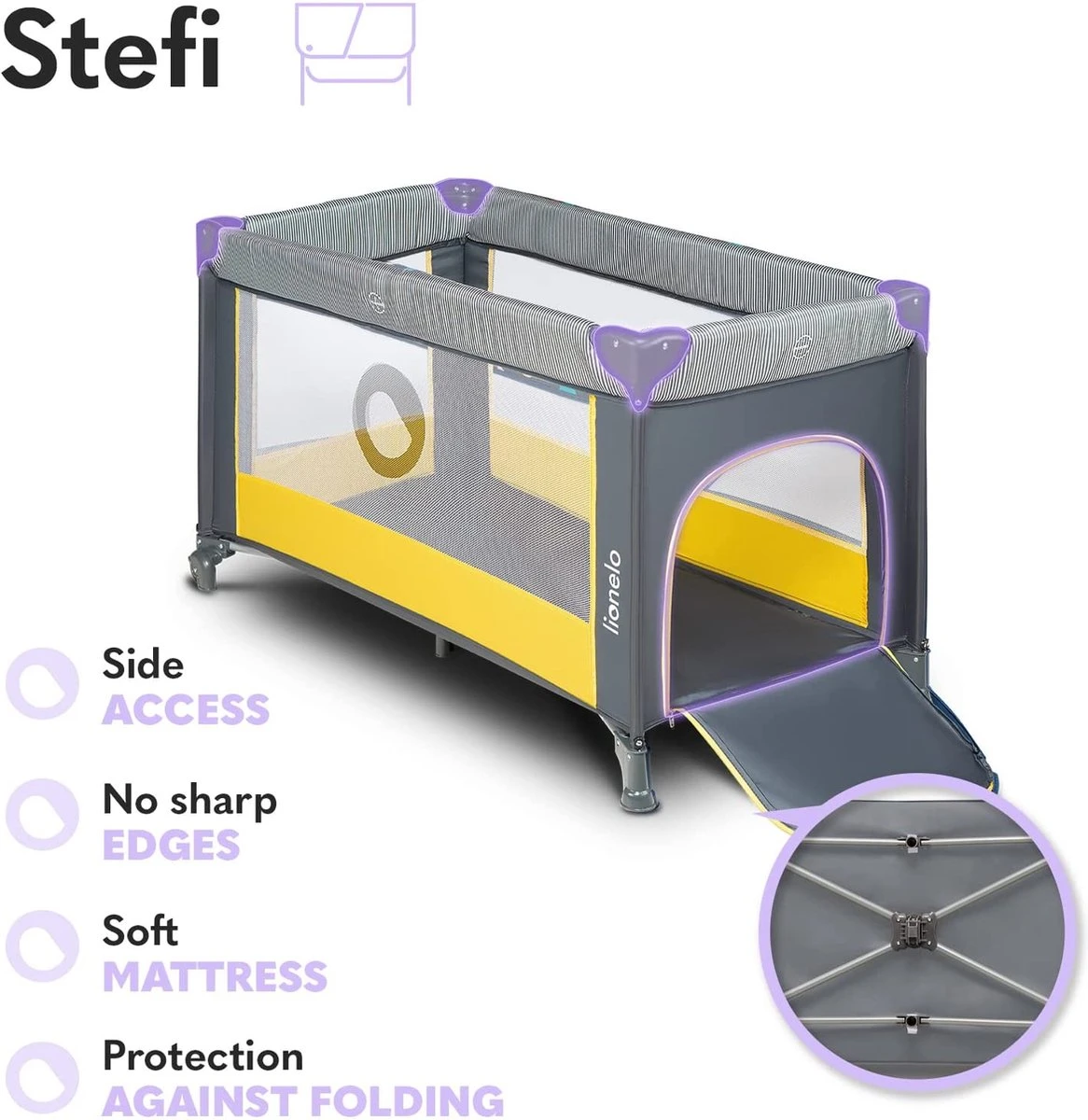 Het snelle opvouwsysteem van het bedje zorgt voor eenvoudig transport of opslag. Het vergemakkelijkt alles nog meer dankzij de transporttas die in de set is inbegrepen. Een praktisch handvat maakt het gemakkelijk te dragen, waardoor Stefi ook handig zal zijn tijdens het reizen.