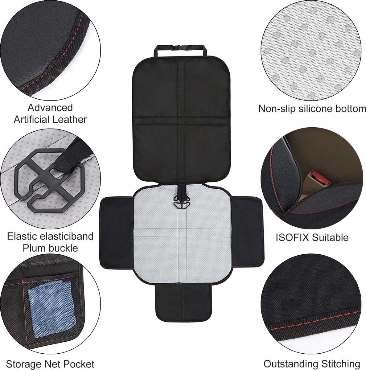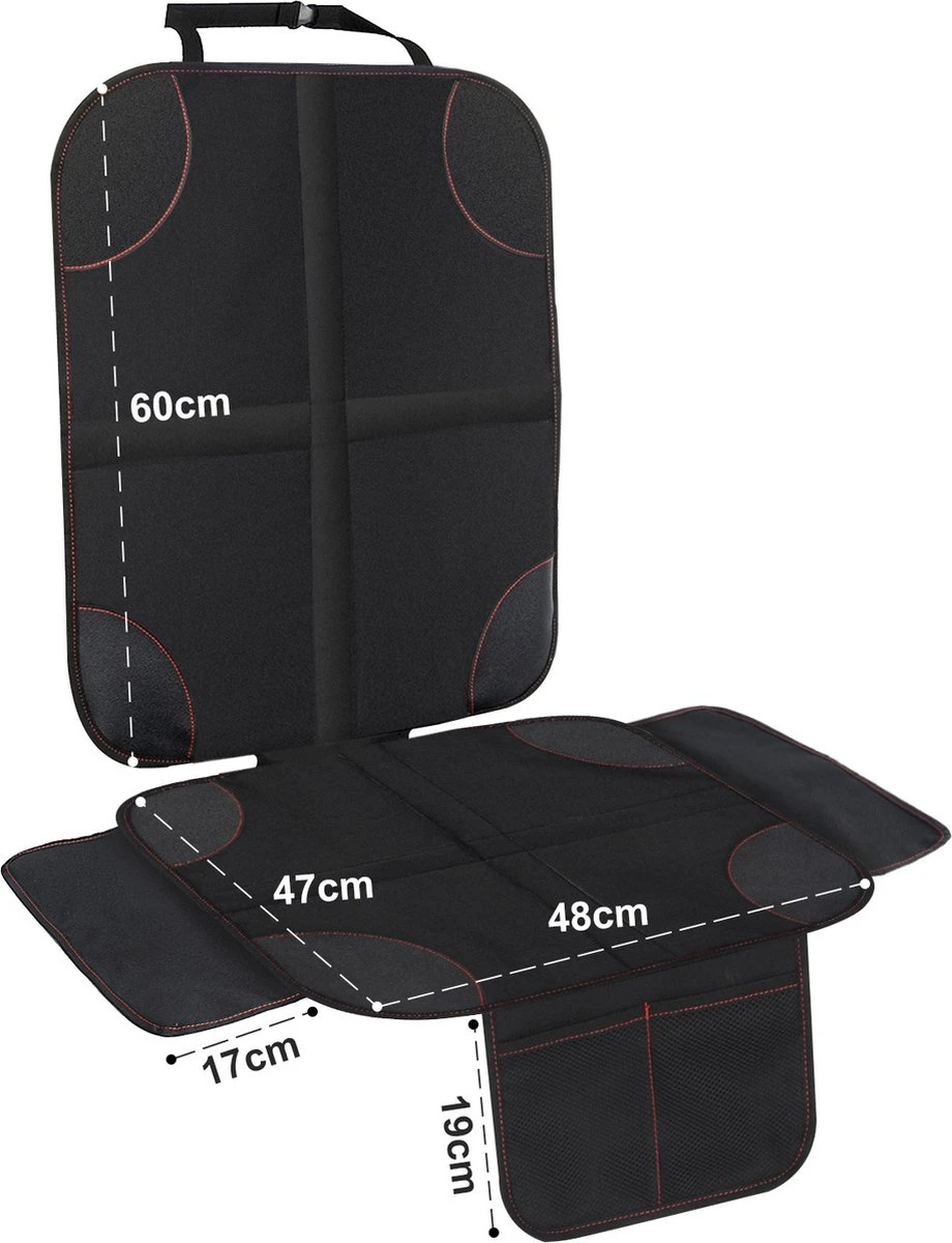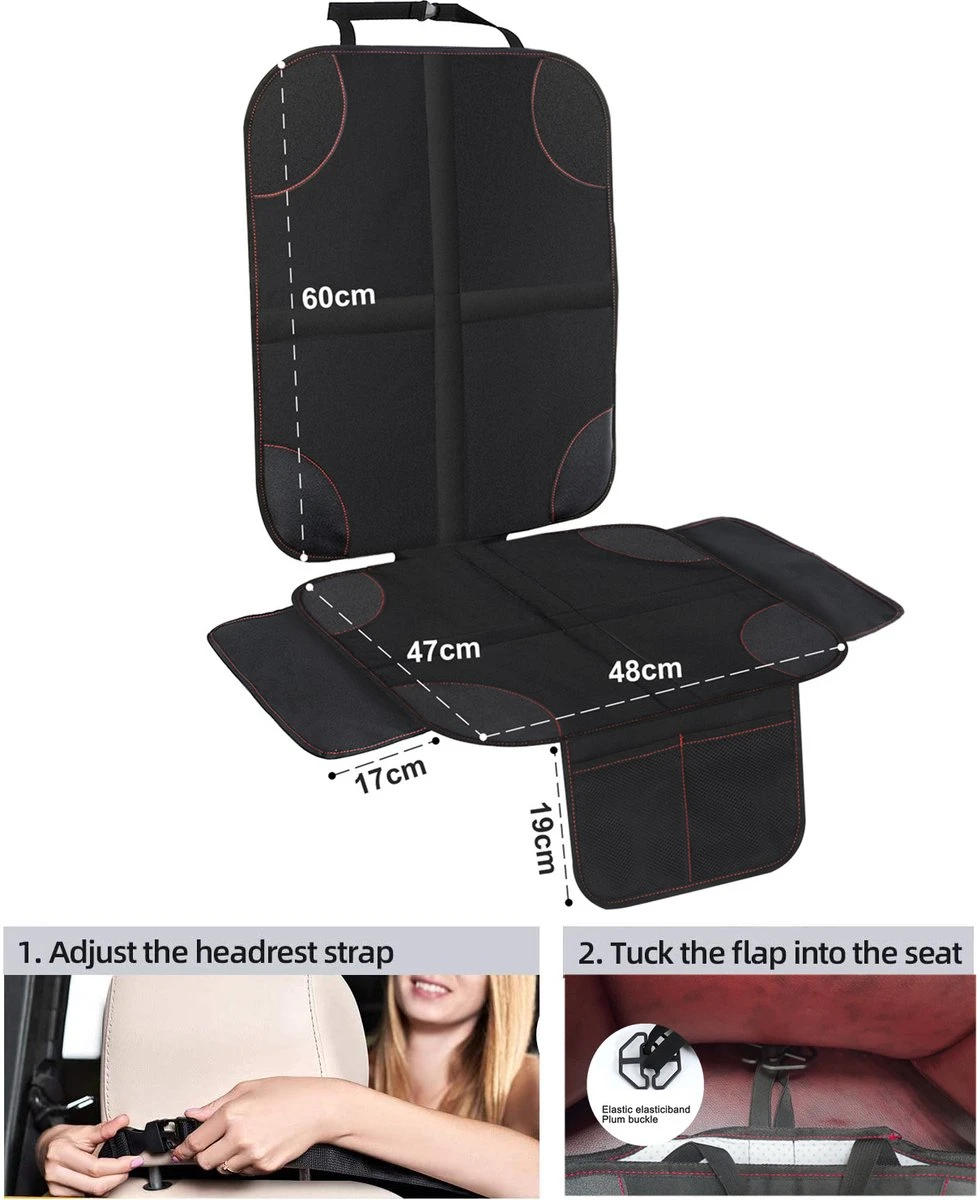 Kinderen hebben soms niet het bezef om de auto schoon te houden. Met deze beschermmat beschermt u uw autostoel bekleding tegen vuil en beschadigingen. Hierdoor blijft het interieur van u auto langer mooi en is reinigen een stuk gemakkelijker. De mat is gemaakt van duurzaam polyester en daardoor gemakkelijk schoon te maken. U kunt de mat eenvoudig monteren doormiddel van een een band aan de bovenkant van de mat die u aan de hoofdsteum kunt bevestigen. De mat heeft een universele afmeting waardoor deze op vrijwel elke autostol en babyautostoel past.