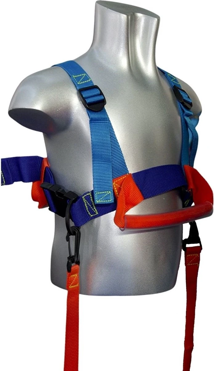 Het skituigje bestaat uit een verstelbaar skiharnas en een afneembare lijn. De schouderriempjes en de borstband zijn snel en eenvoudig op de juiste maat in te stellen. De lijn is makkelijk aan en af te koppelen, zodat je er geen last van hebt als de lijn niet nodig is.