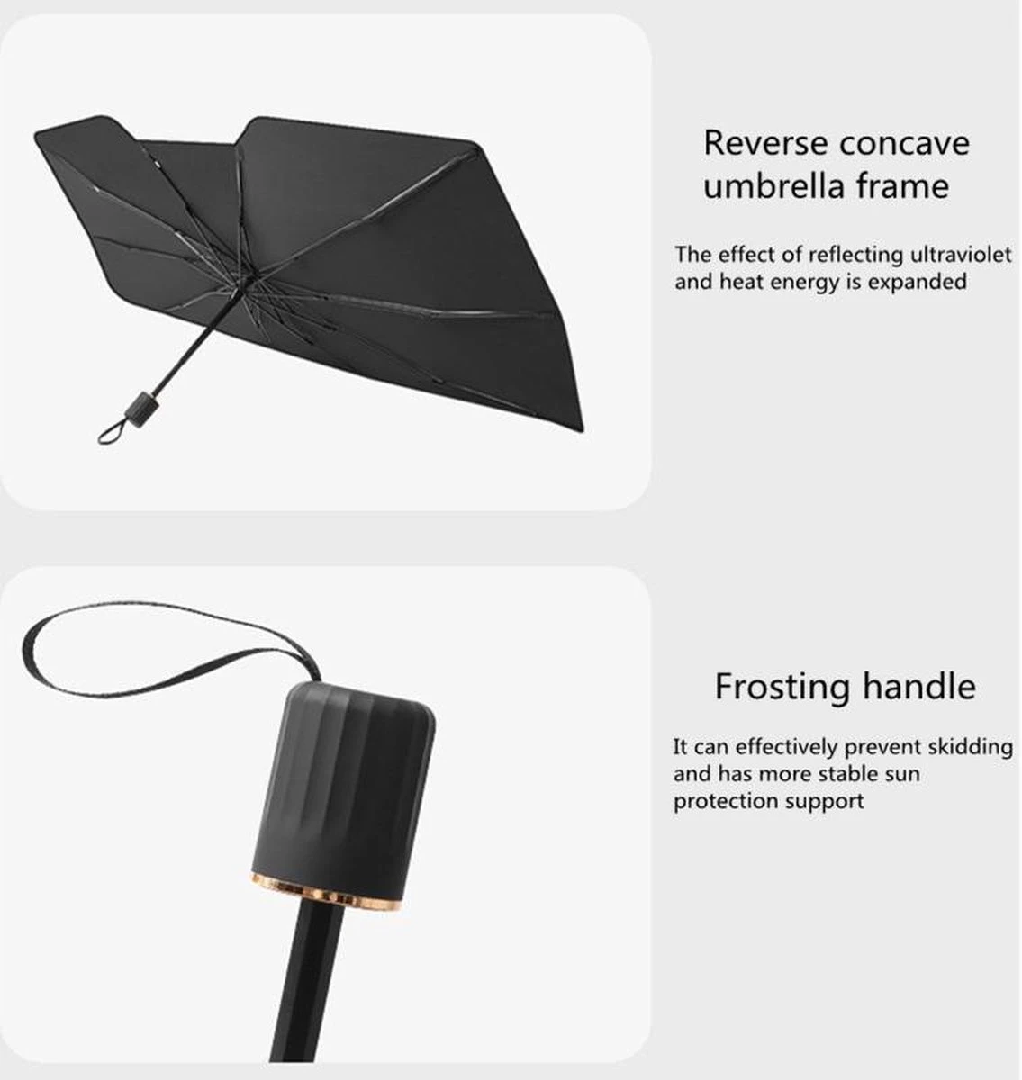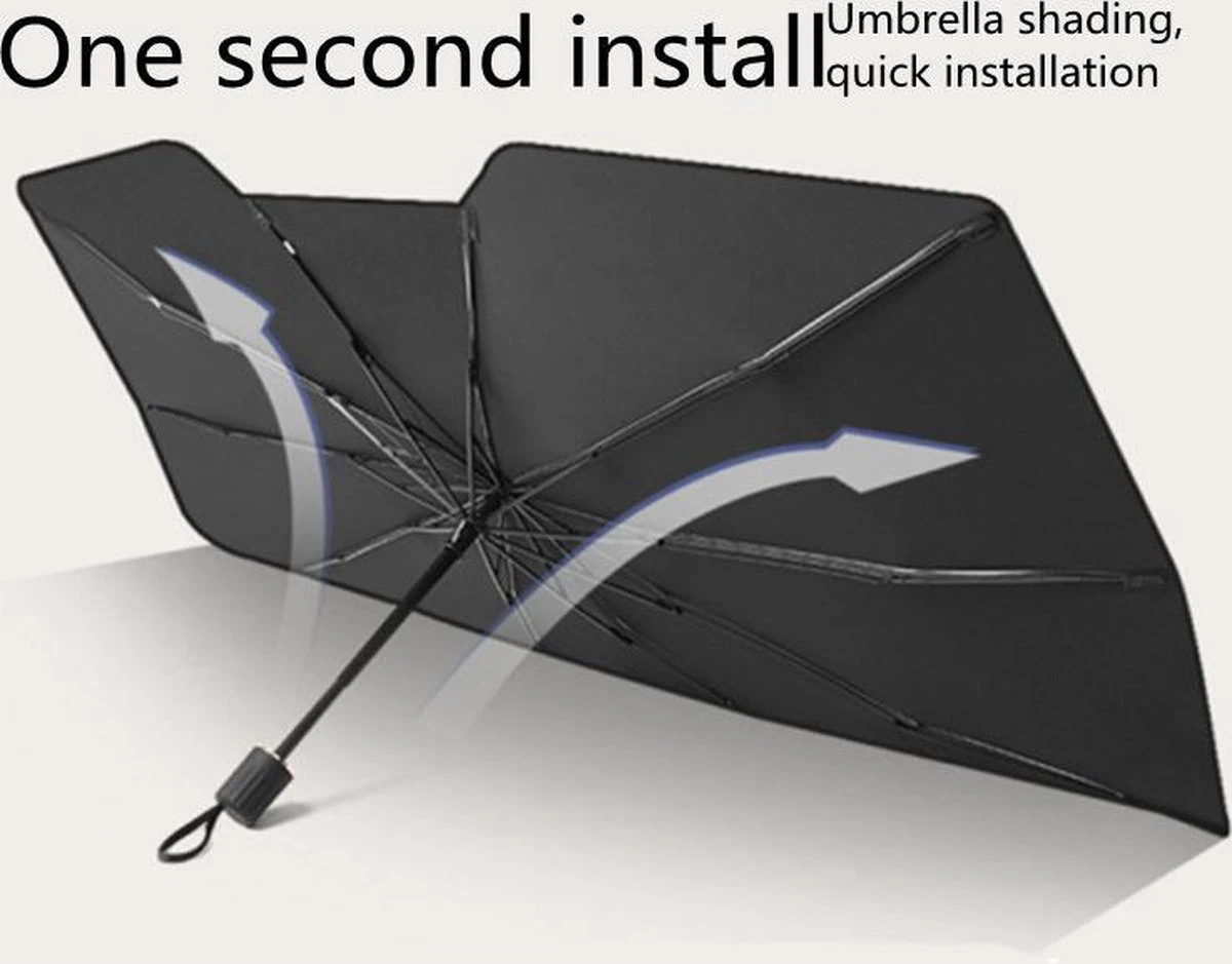 Het wordt ten zeerste aanbevolen om de voorruit van de auto te meten voordat u bestelt, om er zeker van te zijn dat deze paraplu in uw auto past.