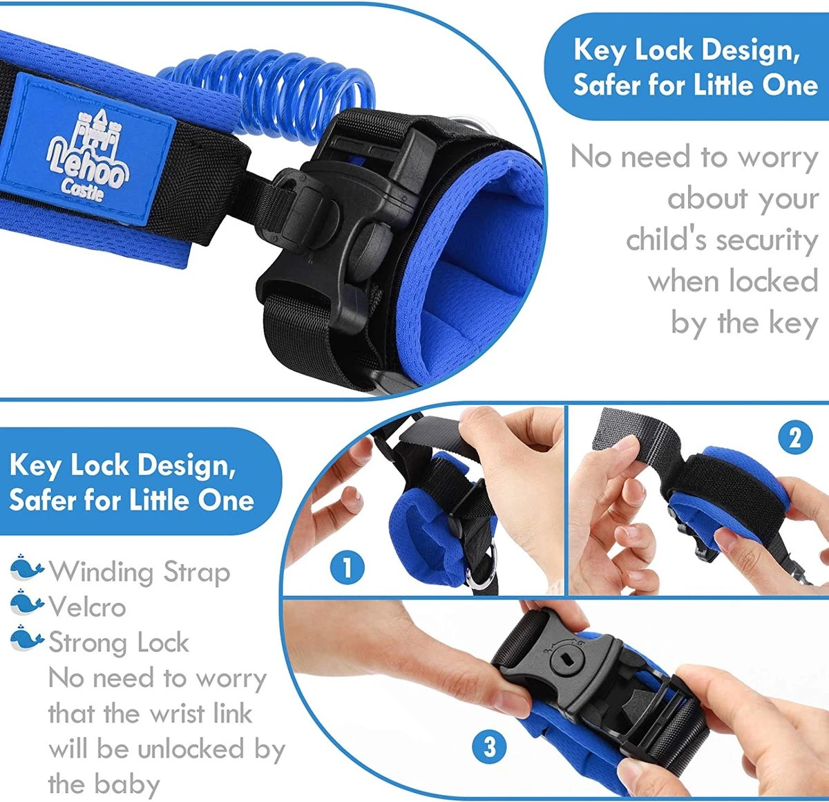 - Uitgerust met sleutelvergrendeling: het hoogwaardige slot en sleuteldesign biedt extra veiligheid – eenmaal vergrendeld zullen kinderen niet in staat zijn om de polsbanden te verwijderen totdat ze door een ouder zijn ontgrendeld.
