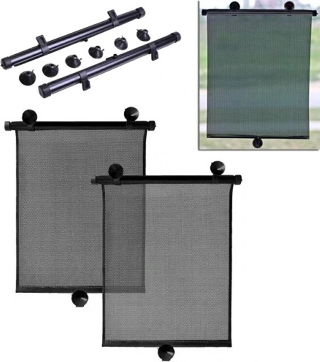 Gloednieuw paar universele autojaloezieën van hoge kwaliteit, 40 cm breed. Het beschermt mensen in de auto tegen overmatige zonnestraling en vermindert de verwarming van het auto-interieur aanzienlijk, waardoor u beter bestand bent tegen de ontberingen van reizen bij warm weer! Uiterst eenvoudige montage op de voorruit dankzij een set zuignappen en haken. Het rolgordijn heeft een automatische rolfunctie! Het is volledig universeel! Past op elke zijruit in alle voertuigen!